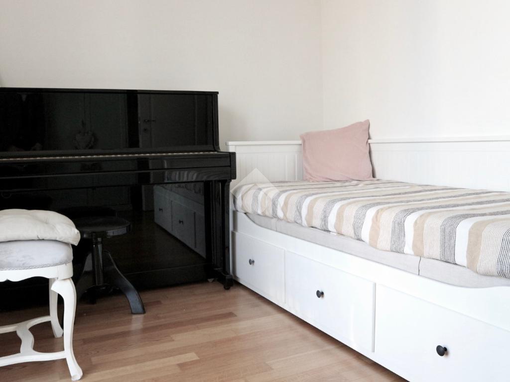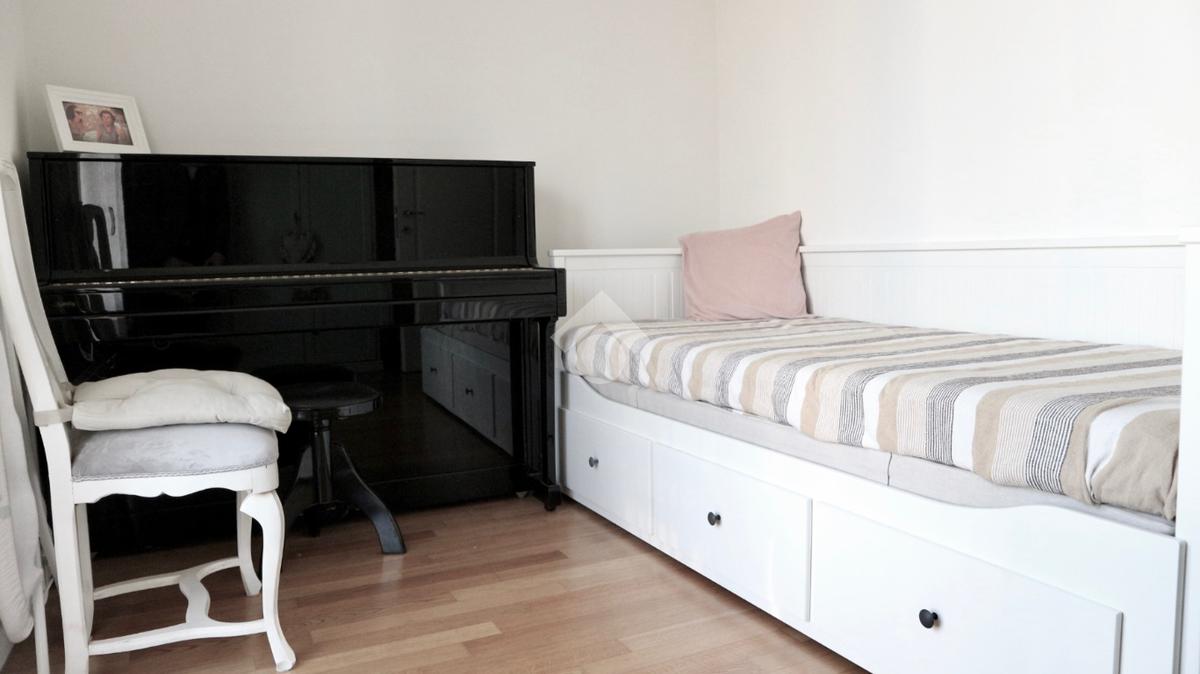 Piano Principale (65 mq): Ingresso indipendente su un soggiorno luminoso con cucina a vista, camera matrimoniale, camera singola e primo bagno. Il calore del parquet corre in tutta la casa, rendendo ogni ambiente elegante e accogliente.Mansarda (30 mq): Un secondo livello versatile, ideale come zona notte aggiuntiva o studio, completo di secondo bagno riservato.Outdoor: La zona giorno e la zona notte godono di 2 balconi e di un piccolo terrazzo abitabile.